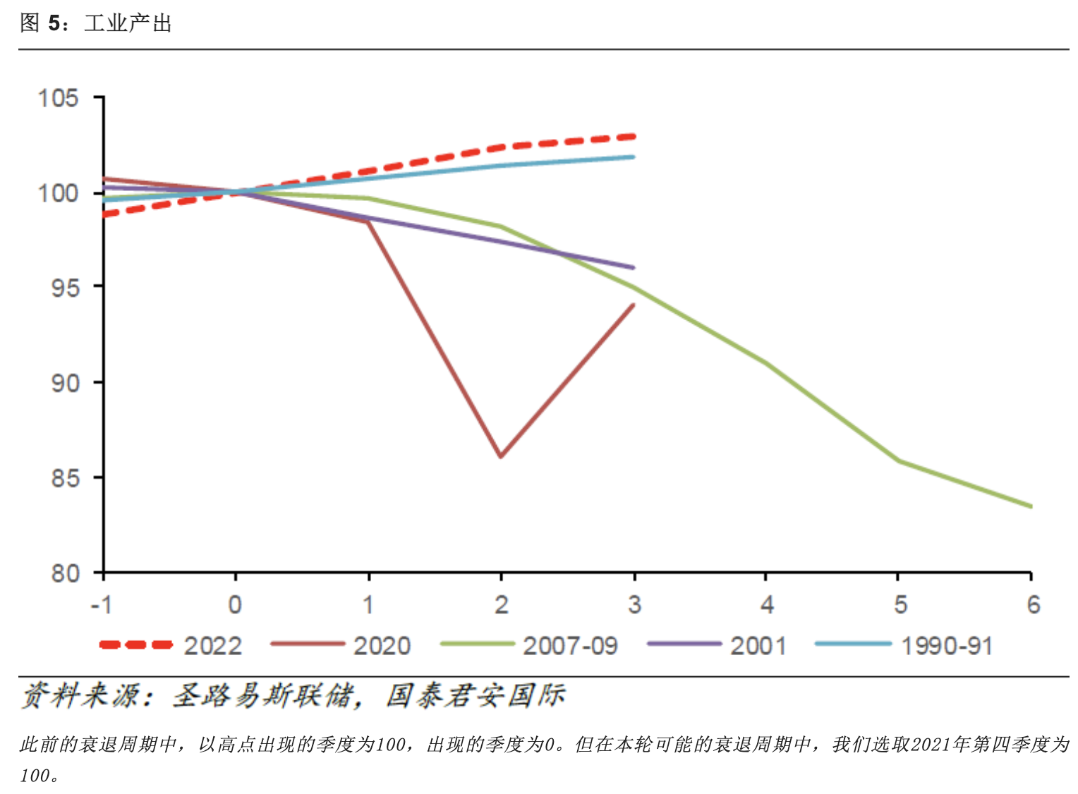 (1)浅度“衰退”:在浅度衰退情境下,美联储可能明年年底降息,经济增速将在-1.0%-0%之间。发生的概率大约在55%,这也是市场主流观点。美联储今年以来连续大幅度的加息在很大程度上可以有效遏制通胀的进一步蔓延,但是仍不能忽视其带来的负面效应。在劳动力市场降温、借贷成本上升、资产负债表走弱的情况下,“浅度”衰退是美国经济最有可能发生的一个结果。