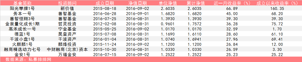 图一:十只8月份月度收益最佳的股票型私募产品