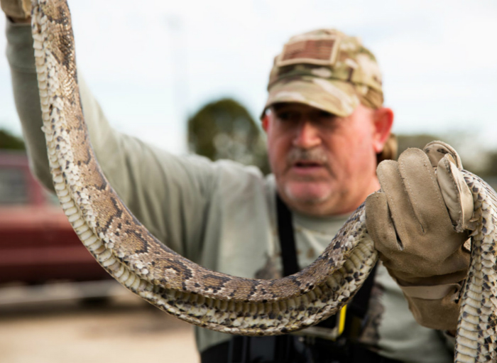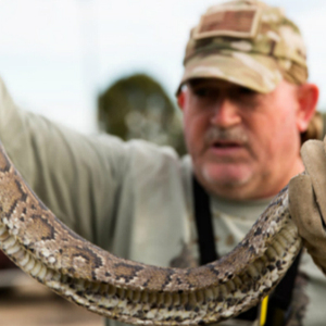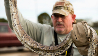庄士敦在整个1月只看见过一条缅甸蟒,一支名叫“沼泽猿人”的捕蛇小队,在大沼泽地国家公园最南端的青蛙塘边逮住了一条长5英尺的蟒蛇。一名猎人问庄士敦是否想抓一抓那条蟒蛇,庄士敦表示他能钩记录下这个瞬间就已经很满足了。“我其实不太喜欢蛇,”庄士敦说到,“下次再抓吧。”