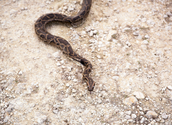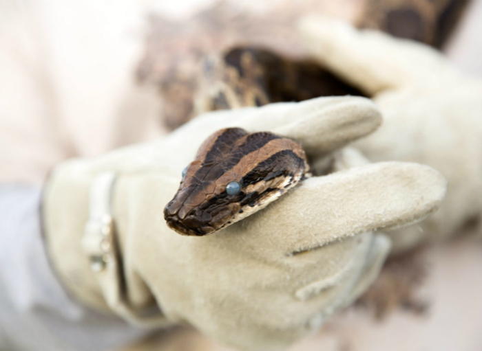 尽管有数百名猎人在四处搜寻,但找到一只蟒蛇需要花费大概15个小时。缅甸蟒通常都藏匿在沼泽和灌木丛里,而且很容易与玉米锦蛇和棕色水蛇弄混。在冬季,意味着更多的蟒蛇会到露天的道路和河岸上晒太阳,但是庄士敦跟着捕蛇队走了几个小时之后仍然一无所获。“我们就一直在找啊找,但都是徒劳,”他说道,第一届“捕蟒挑战大赛”的参赛者们仅仅只抓到了68条蟒蛇(而研究人员将其中几条放生了)。第二届比赛一共抓到了106条--其中有一条长达近4.6米。