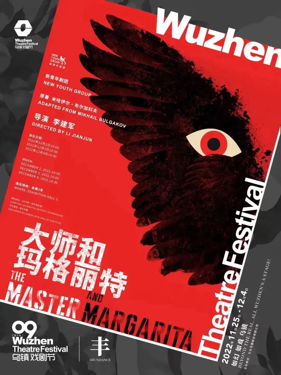 接受媒体采访时,李建军刚刚结束今年乌镇戏剧节的工作赶到上海。12月2日-4日,由他执导、新青年剧团呈现的全新话剧《大师和玛格丽特》作为特邀剧目亮相今年的乌镇戏剧节,同时也是苏联作家布尔加科夫的同名巨著在中国舞台上的首次公演。《大师和玛格丽特》讲述了这样一个故事:在1930年代的莫斯科,秘密警察与告密者横行,一位被称为“大师”的作家在与情人玛格丽特策划出逃的前夕失踪,令玛格丽特备受煎熬。魔鬼撒旦降临,绝望的玛格丽特与之交易,变成力量强大的女巫,她飞到空中救出大师,一起飞向理想之国。这个故事被大师写进日记,这本日记被21世纪的一位天使找到,天使决定穿越回那个时代,寻找日记的真相。《大师和玛格丽特》时长三个多小时、共启用19位演员,李建军说这是他十多年来做过的体量最大、挑战最多的一部戏。