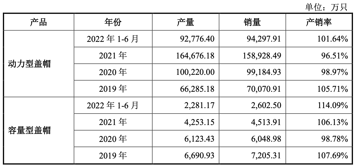 本次申报,公司拟募资8.95亿元,其中8.44亿元用于动力锂电池精密结构件项目,新增年产12亿只组合帽及3.12亿只圆柱型锂电池钢壳的产能,剩余0.51亿元用于研发。截至2021年,公司动力型盖帽、容量型盖帽的产量分别为16.47亿只、4253.15万只。