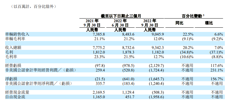 理想汽车表示,车辆毛利率下滑主要与理想ONE有关的存货拨备及购买承诺损失相关。除去上述影响,2022年第三季度车辆毛利率为20.8%。
