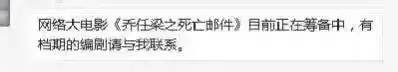 还有那要拍《乔任梁死亡邮件》的二货,死者已矣,最起码的尊重没有,你就屁颠屁颠跑来消费,要做网络大电影,真是够够的。