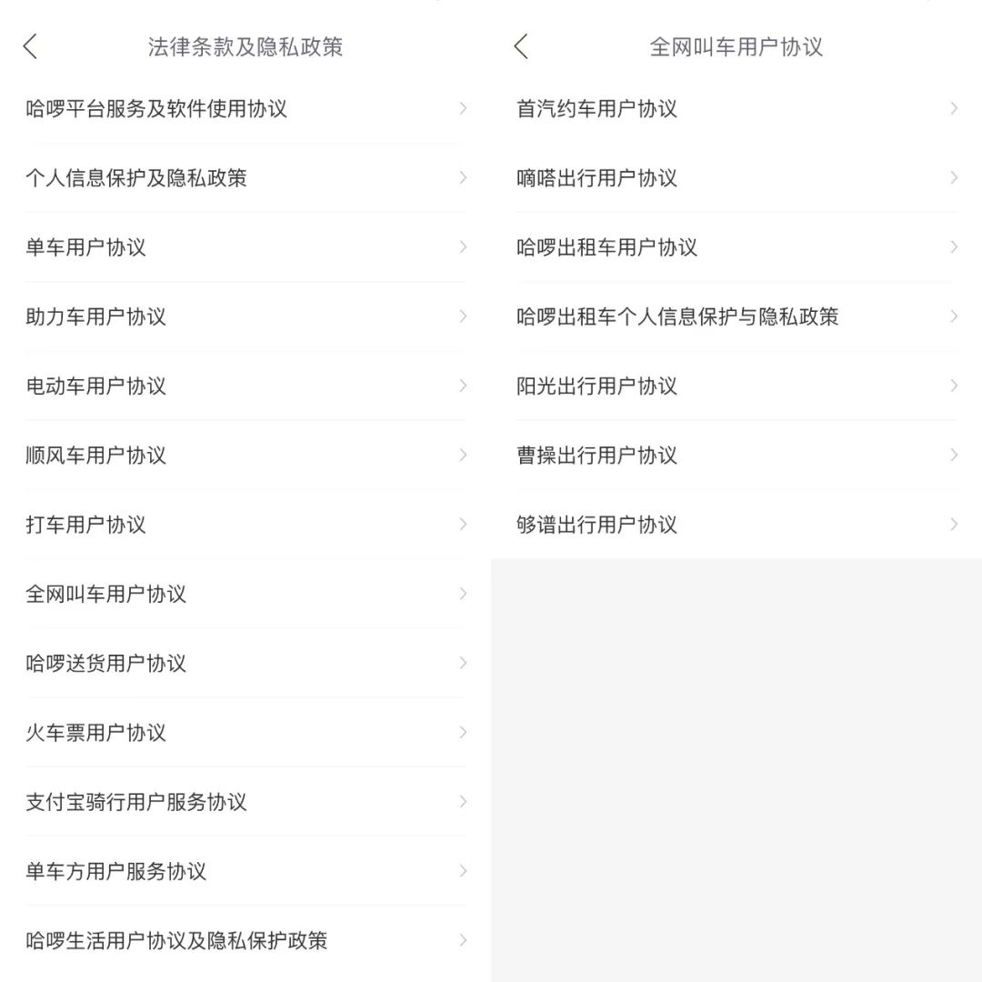 有意思的是,新经济观察团发现,这种过度一键授权个人信息的方式,并不仅仅发生在借贷业务上。在用户登录哈啰出行APP的那一刻,就必须同意哈啰出行的数十个用户协议。