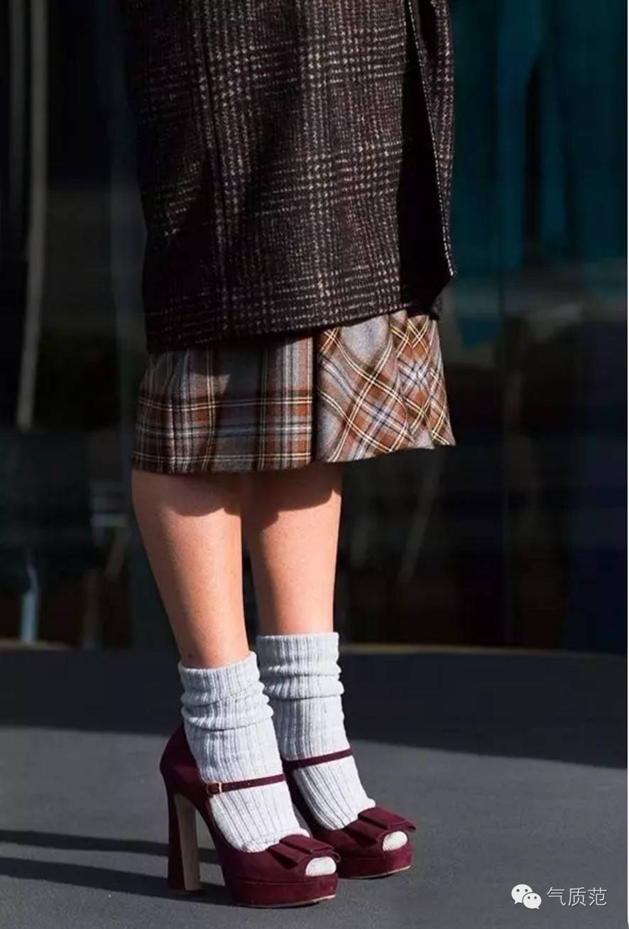 黑鞋白袜也是不错的选择,不过深色袜子更能显脚踝纤细哦!