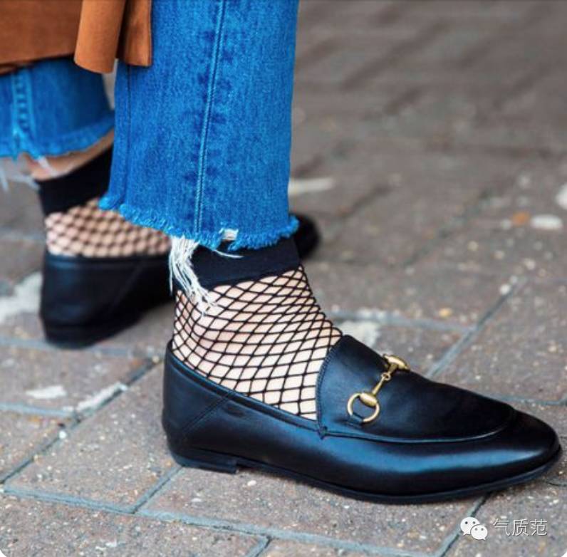乐福鞋配渔网短袜