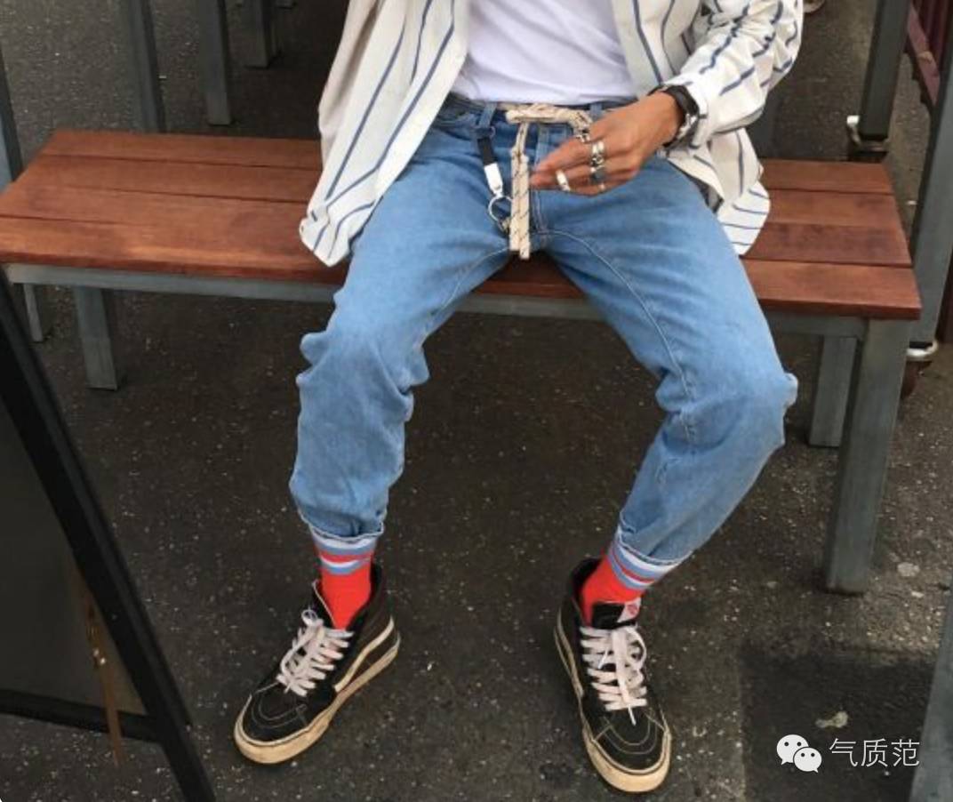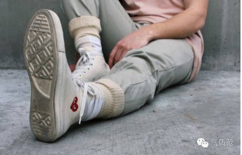短袜最好的朋友,非牛津鞋和球鞋莫属。什么颜色的鞋配什么颜色的袜子,一定是真理。可以把袜子堆下面一些,露出一些褶皱,看上去更随意。