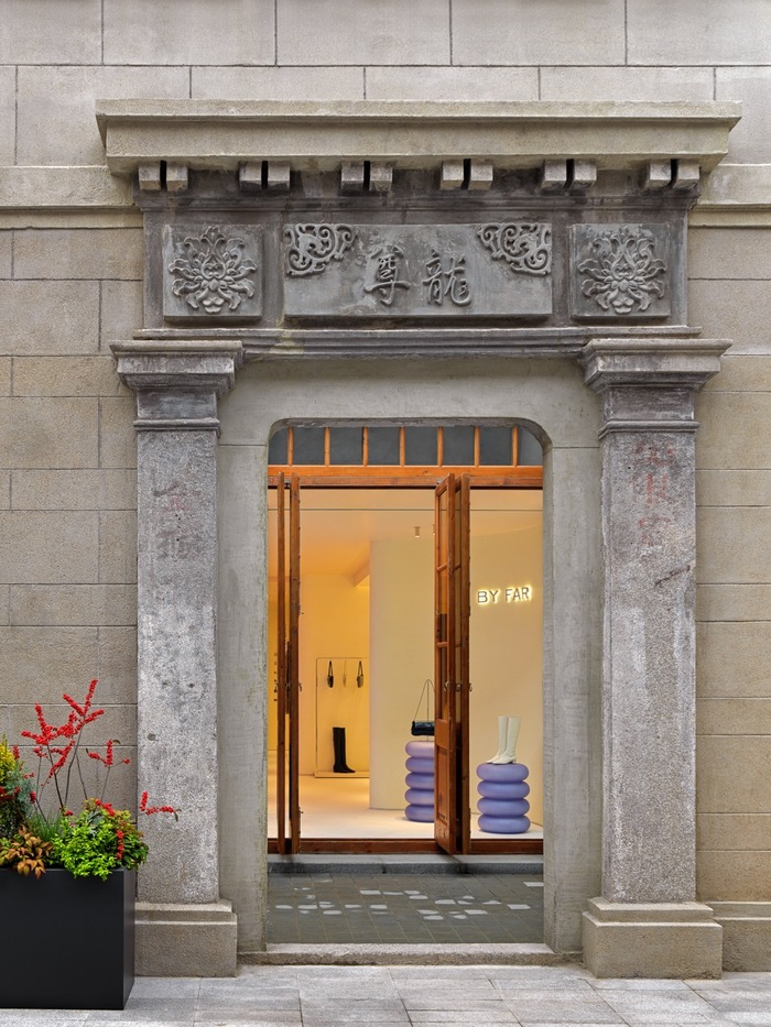 结合张园石库门屋宇的特色,BY FAR也通过设计与张园的独特魅力相呼应。整个零售空间中以树脂板材搭建照壁,并参考了中国堪舆术数的传统文化进行布局。