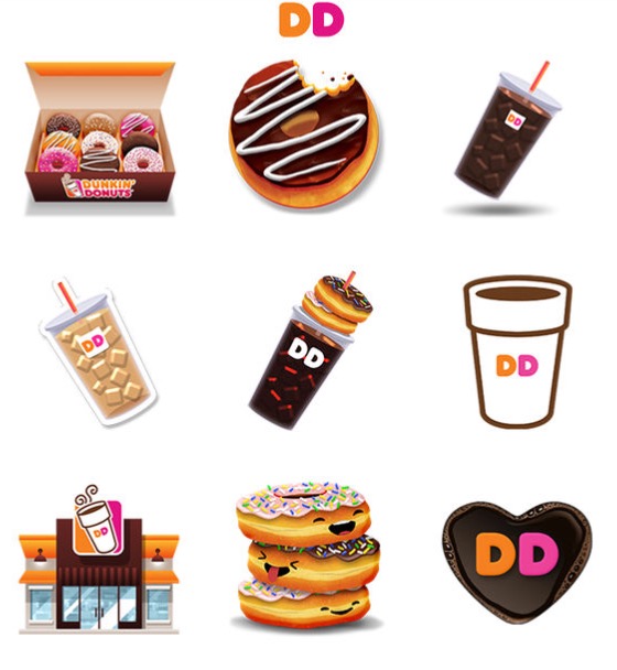 快餐类品牌还十分积极的:麦当劳、汉堡王、Dunkin’ Donuts都推出了以各自代表产品为主题的吃货专属表情包。