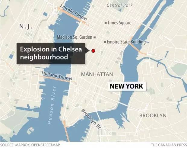加拿大乐活网(lahoo.ca)获悉,爆炸发生在纽约曼哈顿切尔西区,爆炸物疑似一个黑色金属建筑工具箱。爆炸发生在西23街的一幢居民楼前,距离餐厅和超市距离很近。有目击证人称,爆炸造成了6街至7街的商户窗户爆裂,所幸当时店内无人,不需要进行疏散。