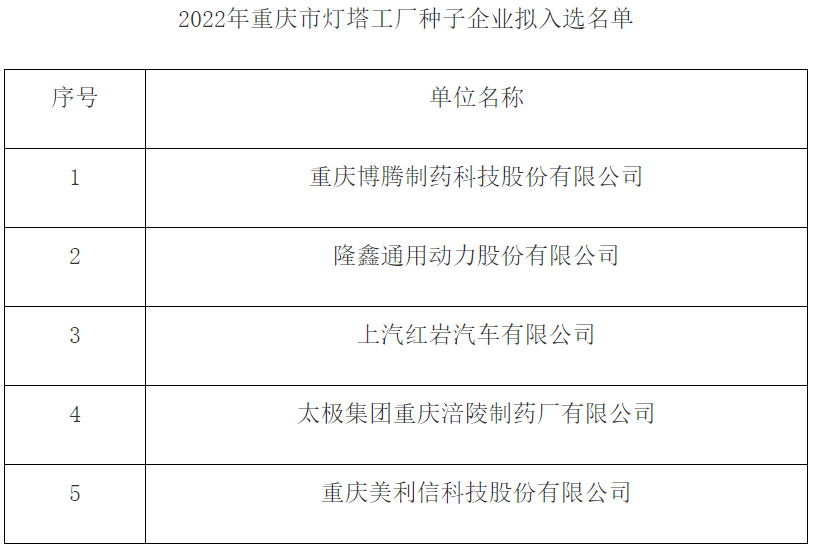 12月15日,据重庆市经济和信息化委员会,经自愿申报、区县经信主管部门推荐、专家评审等程序,拟确定重庆博腾制药科技股份有限公司等5个单位为2022年重庆市灯塔工厂种子企业。