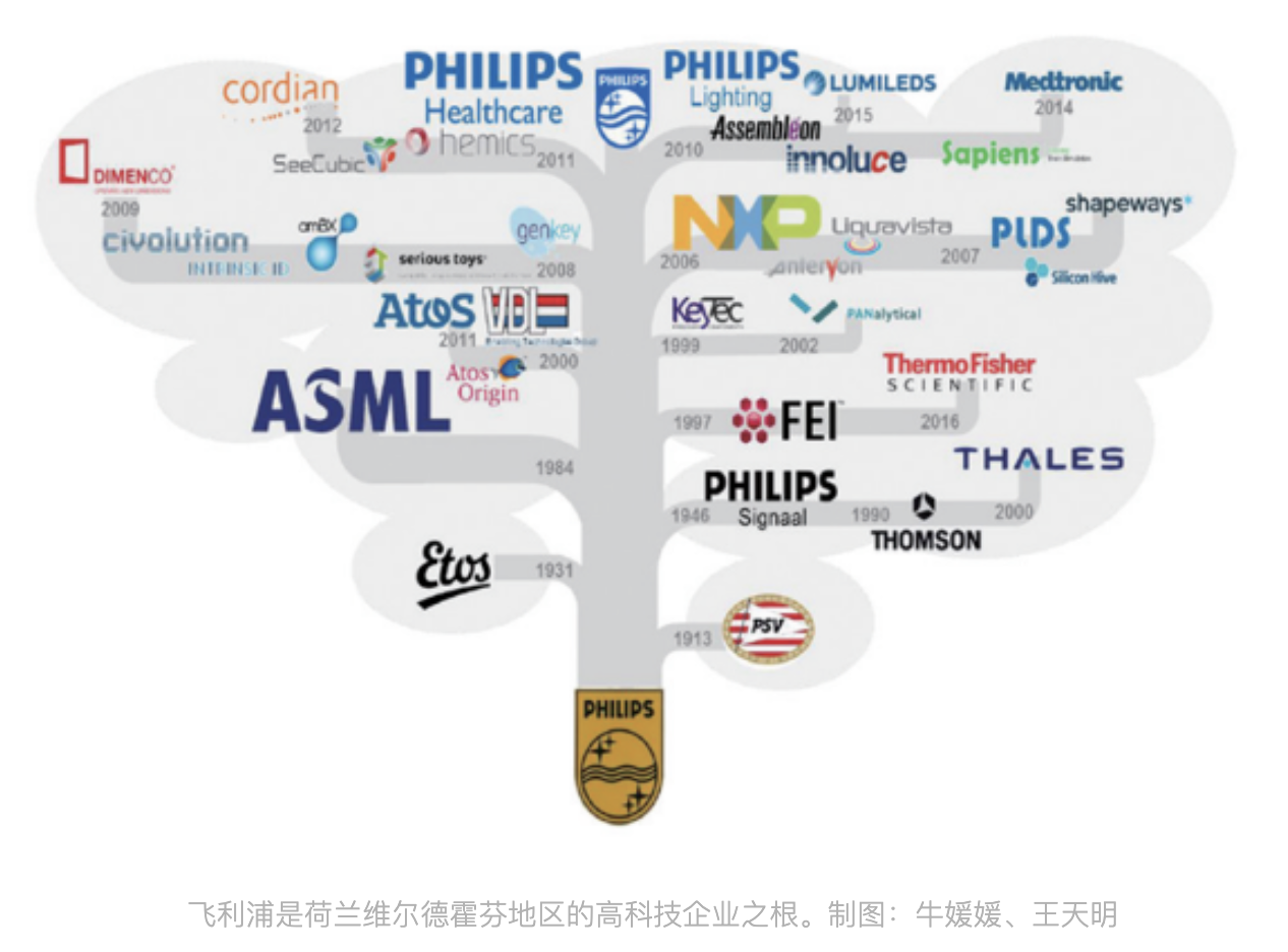不仅对ASML,也对维尔德霍芬地区的高科技产业发展具有巨大的辐射和孵化作用。当地数十家高科技公司都直接或间接脱胎于飞利浦公司,但飞利浦并没有强行将其变成旗下子公司,而是与其和谐发展,共同维护并呵护这个共享创新的模式。事实上,就连维尔德霍芬这座城市,也是依托飞利浦公司的成长而发展起来的。
