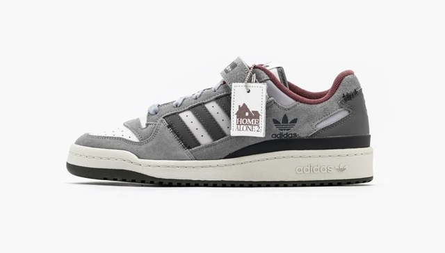 据品牌介绍,新联名鞋款以《小鬼当家2》电影中的鸽子女士一角为设计灵感,以灰色为主色调,采用品牌经典的Forum Low鞋型。
