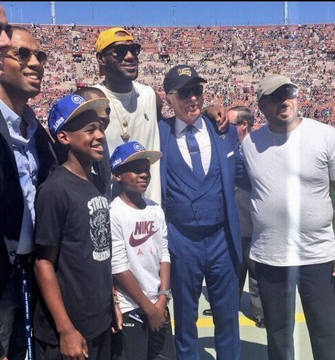 近日,克里夫兰骑士队当家球星勒布朗·詹姆斯,去现场助阵NFL球队洛杉矶公羊队的主场揭幕战。然而,当他走进球场时,现场的一些球迷却高喊“Kobe”,这多少让詹姆斯感觉有点尴尬。毫无疑问,洛杉矶依然是科比的地盘。
