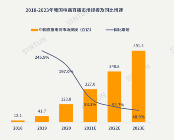 从整体市场规模来看,预计2022年直播电商GMV约为3.5万亿元,年增长率达到53%。