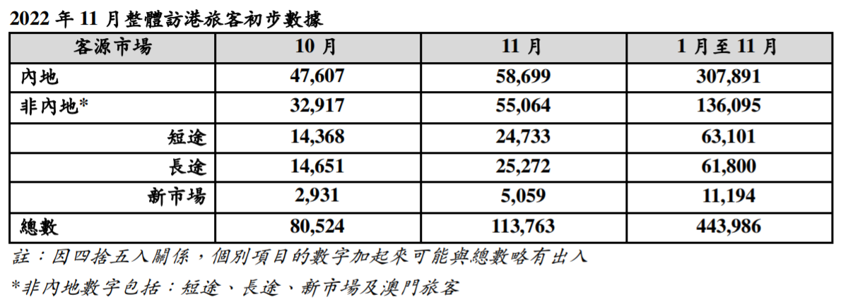今年11月,访港旅客约为11.38万人次,按月增加四成;累计已有44.4万人次访港。目前,香港消费及旅游相关行业(即零售、住宿及膳食服务业)未有明显起色。数据显示,9至11月,消费及旅游相关行业失业率较上一个三个月期间下跌0.2个百分点至5%,仍高于整体3.7%失业率。