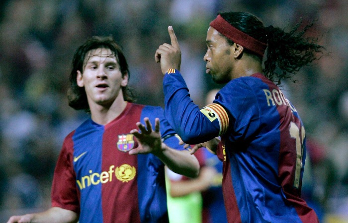 2005年5月1日,梅西在西甲第34轮主场对阵阿尔巴塞特的比赛中替补登场,并于第91分钟接罗纳尔迪尼奥的传球挑射破门,打入职业生涯正式比赛首球。一家豪门俱乐部与一位足坛巨星相互成就的佳话,拉开了序幕。
