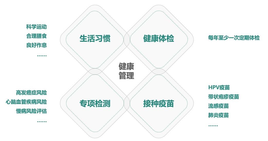 周晓江指出,培养良好的生活习惯、每年至少一次健康体验、针对癌症和心血管疾病等高发疾病做好专项检测、接种疫苗提早预防,都是金融高净值客户行之有效的健康管理方法。