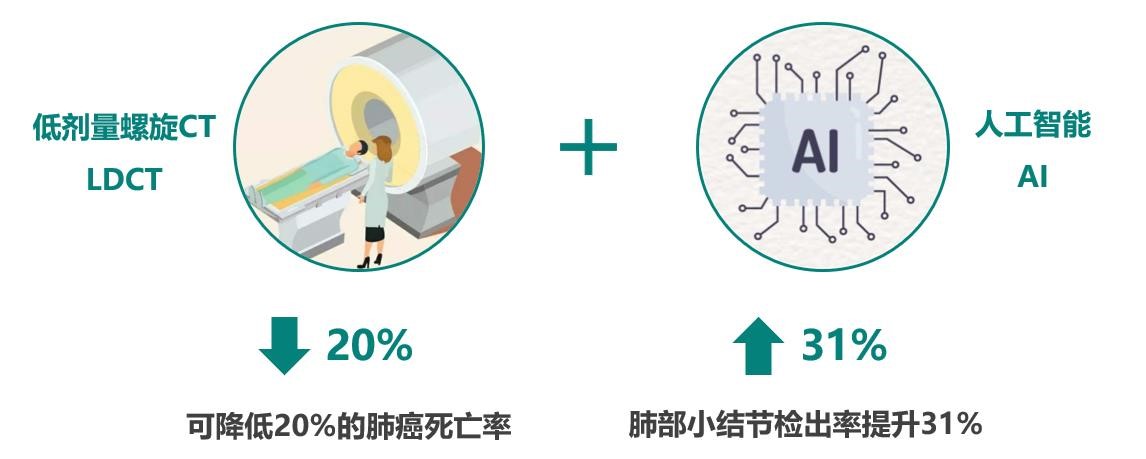 针对中国发病率最高的肿瘤——肺癌,爱康集团在积极推进胸部低剂量螺旋CT的基础上,引入人工智能和液体活检等先进的筛查技术,进一步提高肺癌筛查的效率和准确性。如今在CT筛查中融合AI技术,可使肺部小结节检出率提升31%。