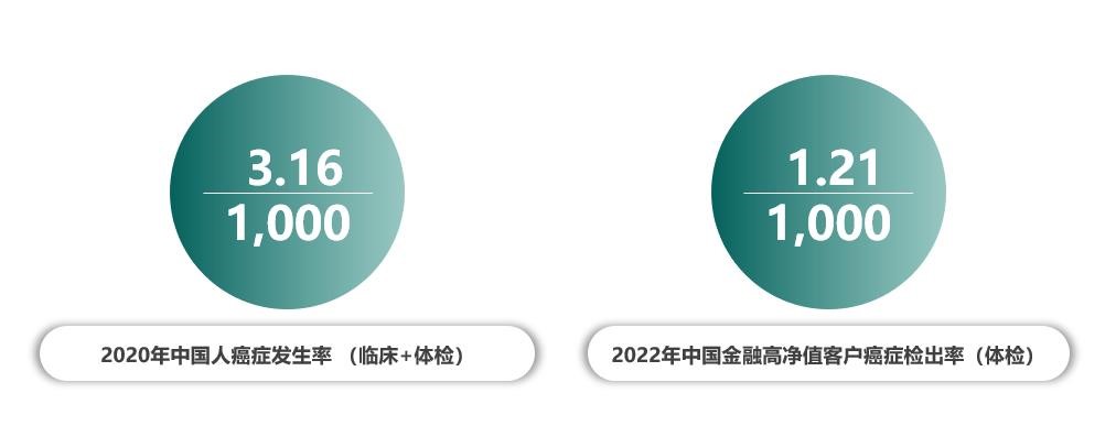 根据2020年我国新发癌症发病率,相当于每1,000人中就有超过3个人确诊癌症,这其中包括了有了症状之后确诊的癌症病例和无症状情况下体检发现的癌症病例。虽然没有具体的统计数据体现多少是有了症状之后确诊的多少是在无症状情况下体检时发现,大多数应该是有了症状之后确诊的。但是如果是在无症状的情况下体检时发现,这些癌症往往会比有了症状之后确诊的更早期,因此通过体检发现癌症具有重要意义。截至2022年,在爱康集团参加体检的中国金融高净值人群中,癌症发病率至少为1.12‰,也就是每1,000位参加体检的企业家中就有超过1个人确诊癌症。