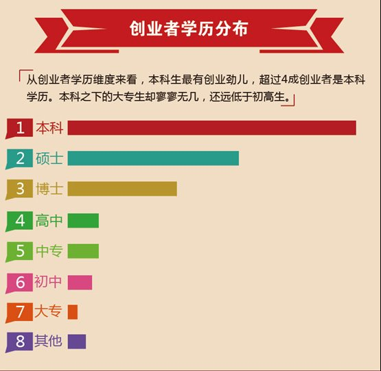2014年份曾经有这么一个调查,调查结果表明,高学历人群对创业最有激情,因为他们有信心有把握去创业,创业这件事对他们来说并不是背水一战。而一般学历的人自身条件没有优势,那么他们创业顾虑的比较多,不能贸然投钱。