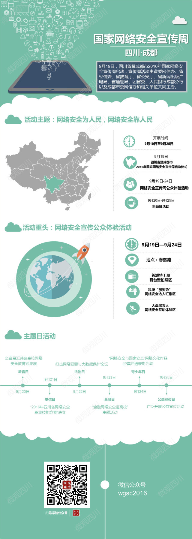 四川省暨成都市2016年国家网络安全宣传周于19日正式拉开帷幕活动有哪些精彩看点?有哪些活动与我们息息相关?让微观君带你抢先看~