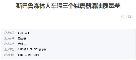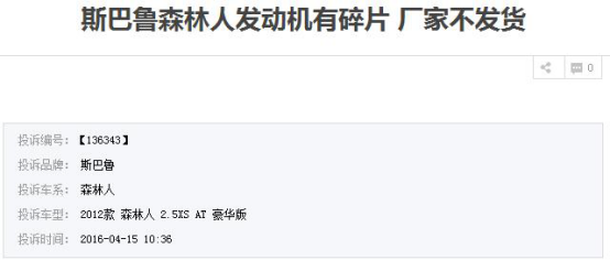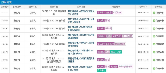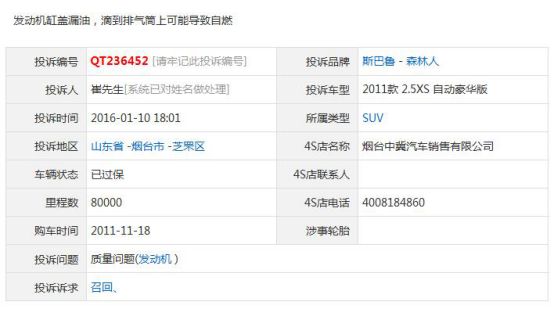 懂车君为大家整理了几个斯巴鲁森林人的典型投诉案例: