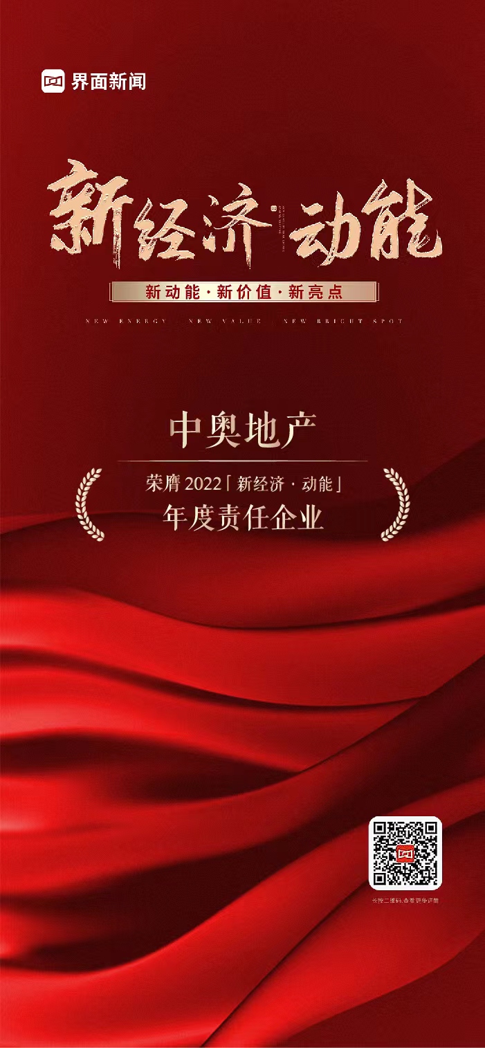 12月23日,在由界面新闻举办的2022年“探索创新发展新动能”【新经济·动能】活动上,中奥地产荣获“2022年度责任企业”奖项。