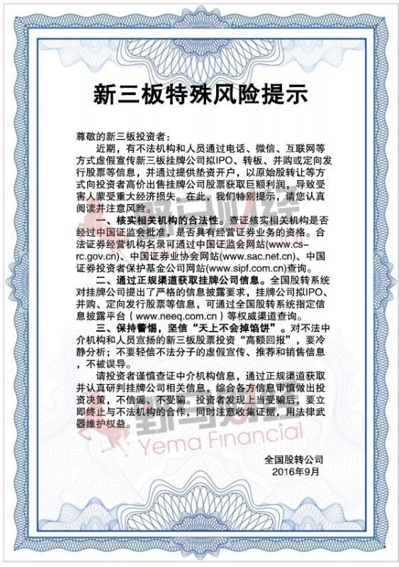 终于,诸多骗术让广大投资者防不胜防,股转系统也开始出手,守护新三板这块“价值投资的净土”!9月19日便在官方微信上发布新三板特别风险提示(不是普通的哦!)。