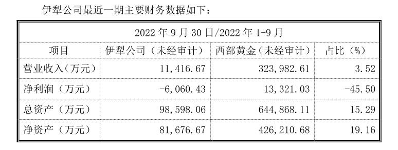 不过从今年前三季度来看,伊犁公司的营收占比大幅下降,前三季度仅实现营收1.14亿元(未经审计),占西部黄金总营收的3.52%,净利润则亏损6060.43万元。