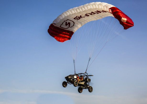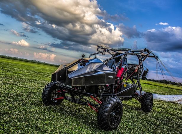 SkyRunner提供的这款全地形车能够在荒野的跑道中加速前进,而后利用一个翼伞变身为轻型运动飞行器,其地面速度可达每小时70英里(约113公里),飞行速度则为每小时40英里(约64公里)。这款作战车辆能搭载两名乘员行驶240英里(约386公里),或在10000英尺(约3048米)的高度飞行120海里(约222公里)。新款装备有碳纤维车身的SkyRunner原型车售价约为13.9万美元。