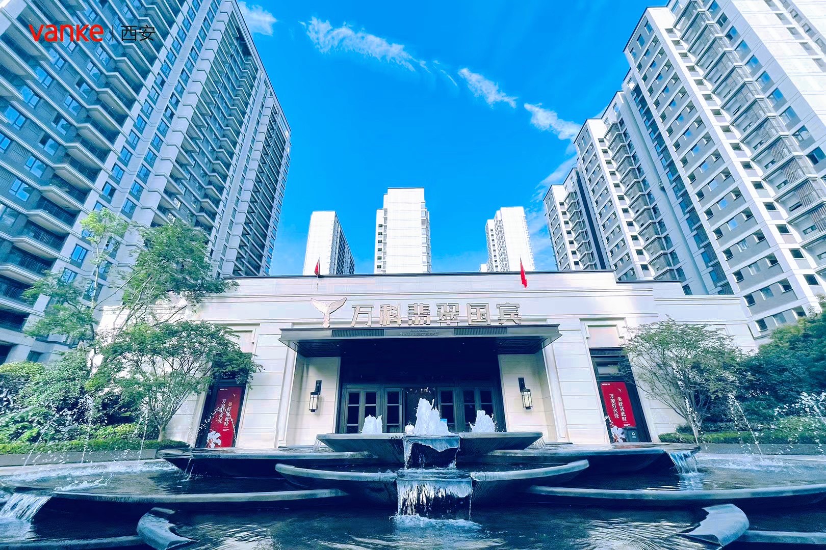 翡翠国宾东区保留原售楼处建筑,不仅承担着丈八东路的人行主出入口,还兼具会所,承担会客厅的功能,囊括游泳池、健身房等多功能运动休闲空间及蔬菜便利店等便利的配套服务。让归家充满仪式感的同时也让业主生活拥有私密及便利性。北区及东区底商的“交付前开业”,为诗情画意的生活增加了人间烟火的生活气息。项目同时配备一所幼儿园并已如期开园;所有批次车位均已如期交付;项目工作人员不舍昼夜,奋力为业主们开启美好的生活及时输入配套硬件。