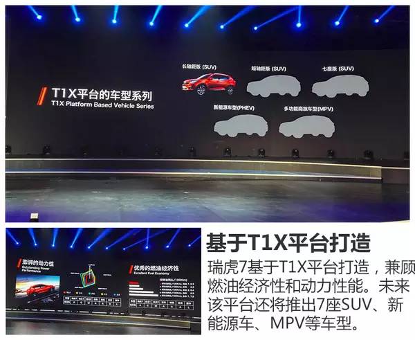 瑞虎7以旗下专业SUV全新平台—“T1X”打造,定位拥有前瞻造型、智慧科技的动感SUV,代表了奇瑞目前最高的造车水准。之所以称为“未来派超动感SUV”,不仅因其源自“2012年度最佳概念车奖”的TX概念车量产,瑞虎7在造型设计、操控、智慧科技等方面均与其它现有SUV也有不同之处。