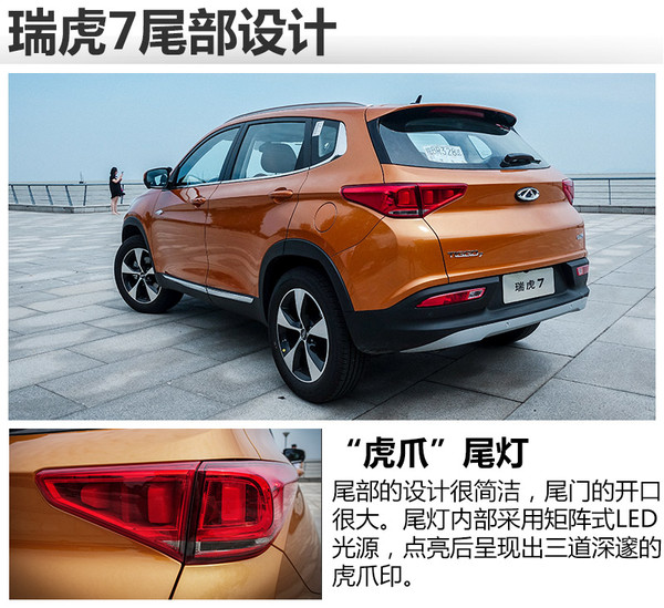 尾部的设计很简洁,尾门的开口很大,这也是为了拿取行李方便而做出的优化。尾灯造型采用不规则设计,风格偏柔和,与整车的设计理念相呼应,内部采用矩阵式LED光源,点亮后呈现出三道深邃的虎爪印。
