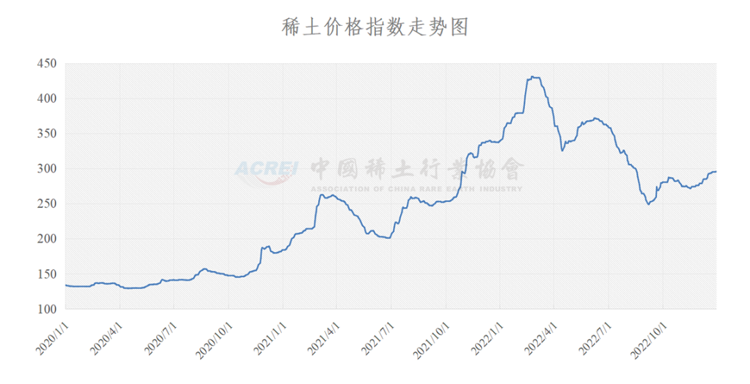 据中国稀土行业协会,12月29日,稀土价格指数报296.2,较前一日上涨0.6点。