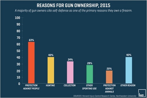 并不是每个美国人都热衷于持枪自卫。最新调查显示,美国约半数的枪支集中在3%的成年人手中。这份调查是美国哈佛大学和东北大学的公共卫生研究学者于2015年通过网络调查完成的。《卫报》称这是近20年里有关美国枪支主人最详尽的调查报告。