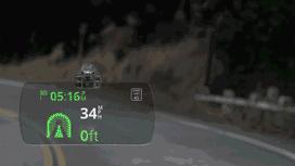 Hudly 还能连接汽车的 OBD2 接口,监控行进过程中的车况,读取转速、水温、排放、油量等数据,并显示在透明屏幕上。