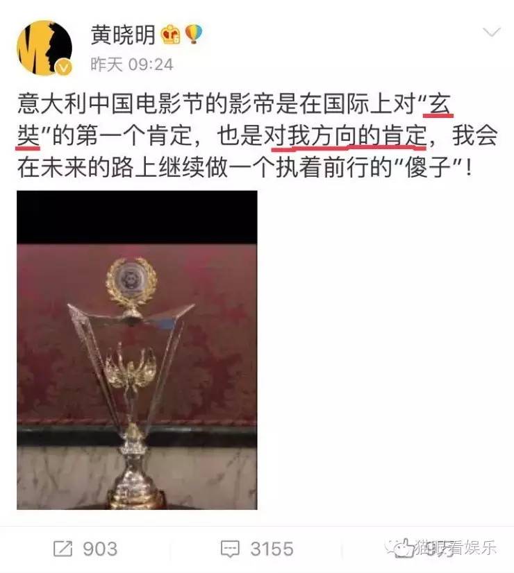 注意,黄教主没有说“国际上对‘我’的第一个肯定”,而是说“国际上对‘玄奘’的第一个肯定”;还有,黄教主没有说“对我演技的肯定”,而是说“对我方向的肯定”!