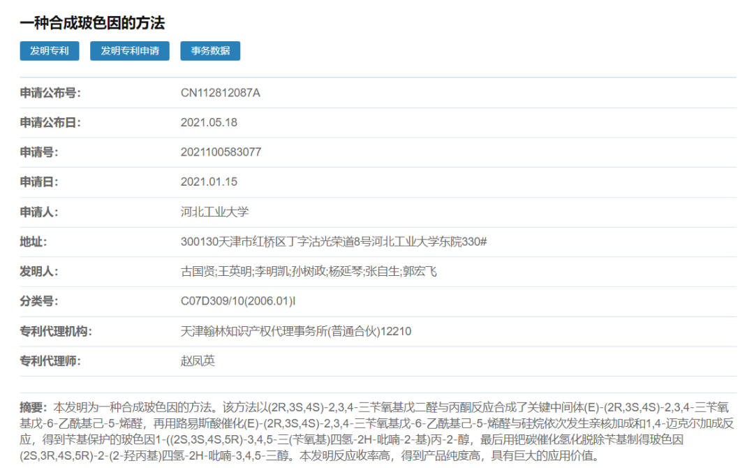 据了解,该发明专利的玻色因反应收率和产品纯度高,具有巨大的应用价值。