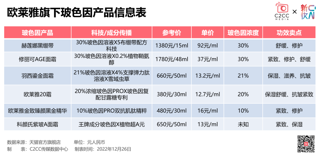 无论是玻色因溶液浓度为30%的赫莲娜黑绷带、修丽可AGE面霜,还是羽西21%玻色因的鎏金面霜,亦或是浓度低于5%的欧莱雅紫熨斗,上述新推的金致小蜜罐身体乳。玻色因覆盖了欧莱雅旗下不同浓度、不同价位的多个明星品牌产品。