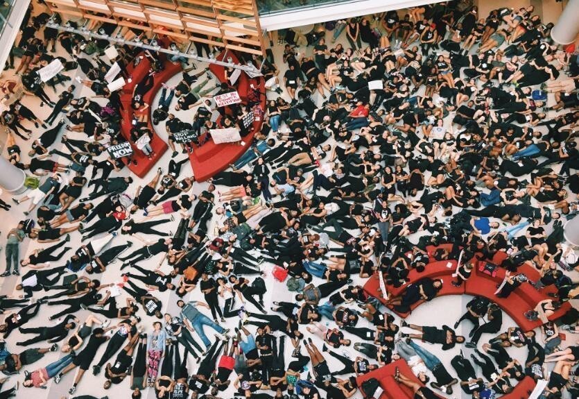 美国夏洛特枪击事件:市民选择用“倒地平铺”的方式表达不满,继续进行示威活动。