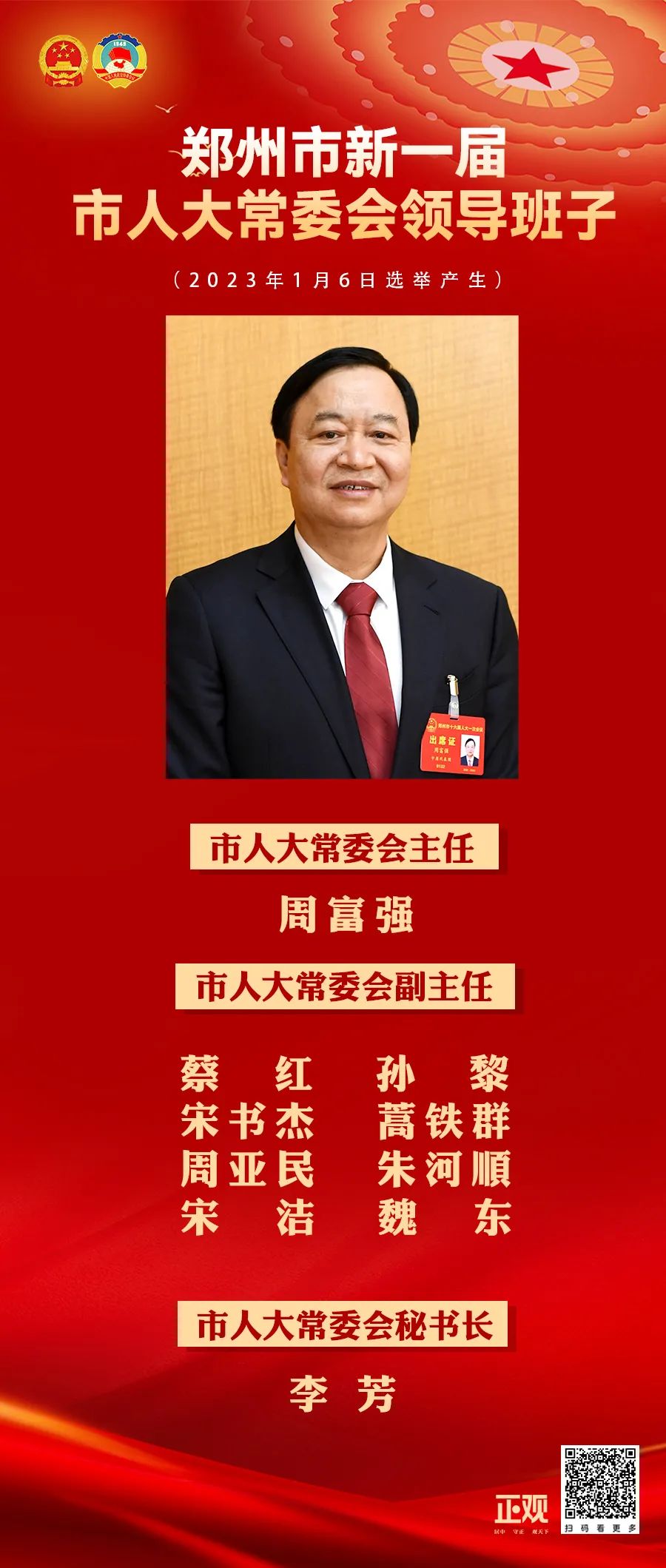 1月6日下午,郑州市第十六届人民代表大会第一次会议举行第三次全体会议。会议选举周富强为郑州市第十六届人大常委会主任。