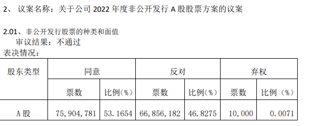海南椰岛1月6日公告,《关于公司2022年度非公开发行A股股票方案的议案 》未通过股东大会审议。表决结果显示,同意比例53.1654%,反对比例46.8275%。