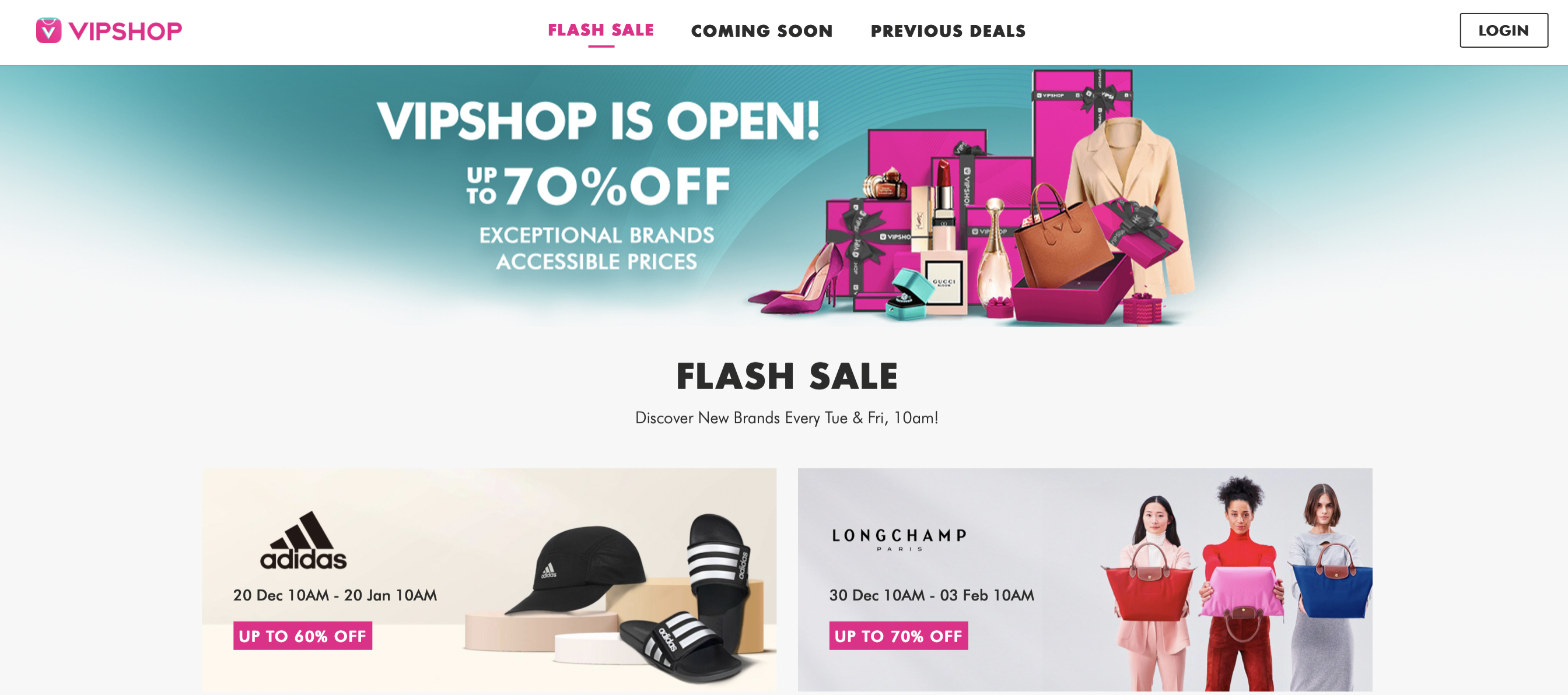 点开购物网站,可以看到唯品会东南亚业务延续了国内“名牌折扣+限时抢购+正品保障”的特卖模式打法。