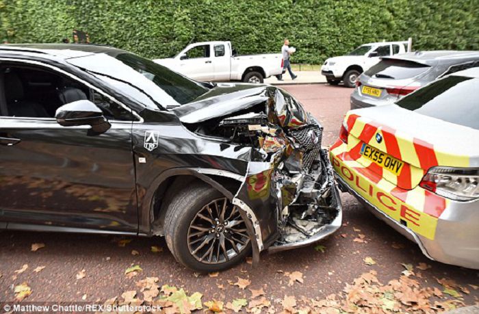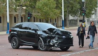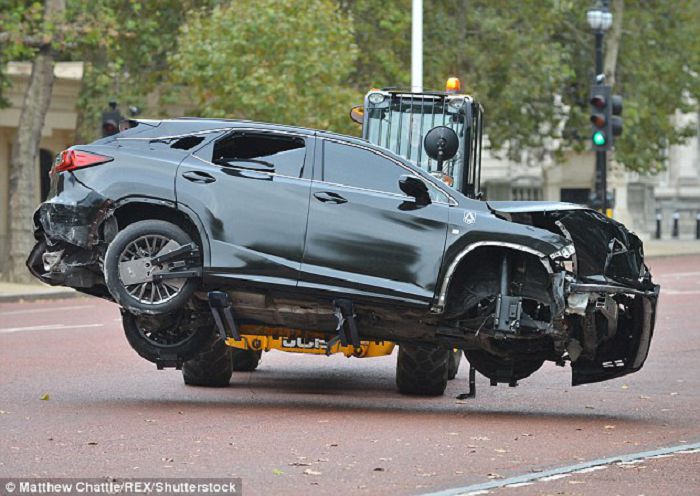 这辆不幸的雷克萨斯SUV在上周六跑到伦敦中心地带的林荫路对即将上映的科幻大片的片场进行拍摄,不过至少对于制片方预算经理而言幸运的是,在事故中真正昂贵的豪车并无大碍,它们只是受了点刮擦伤。