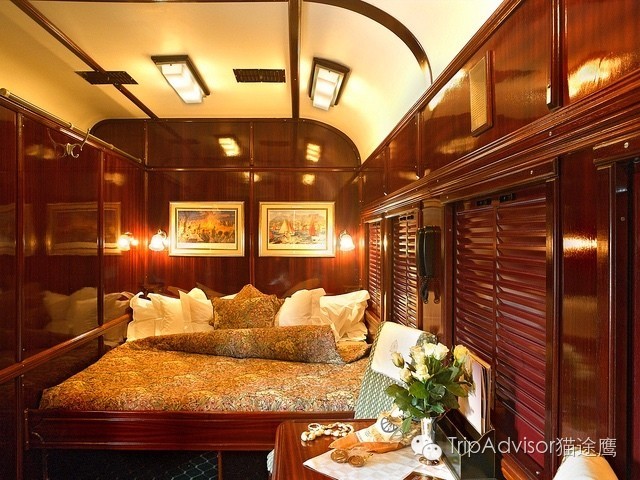 印度豪华黄金列车原属于印度王室,印度被英国统治后一度荒废,直到被人购买后重新装饰得以沿用至今。列车内部装饰和设施都极尽奢华,同时配有卧室、小厨房、浴室等场所,每一件装饰品都处处透露着王室的高贵与考究。