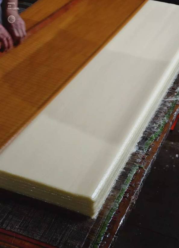 除了抄纸,最后的榨干和焙纸工艺也是极为重要的,关系着最后纸张的成型。榨干是个技术活,力道、时间要把握精准,过多过少都不合适。而焙纸,则是一个耐心活,就是把湿纸张烘干的过程。必须把纸张一张张分开,刷贴在烘壁外表,靠着壁内传到壁外的热量,纸张慢慢变干,既不起皱,也不发脆。