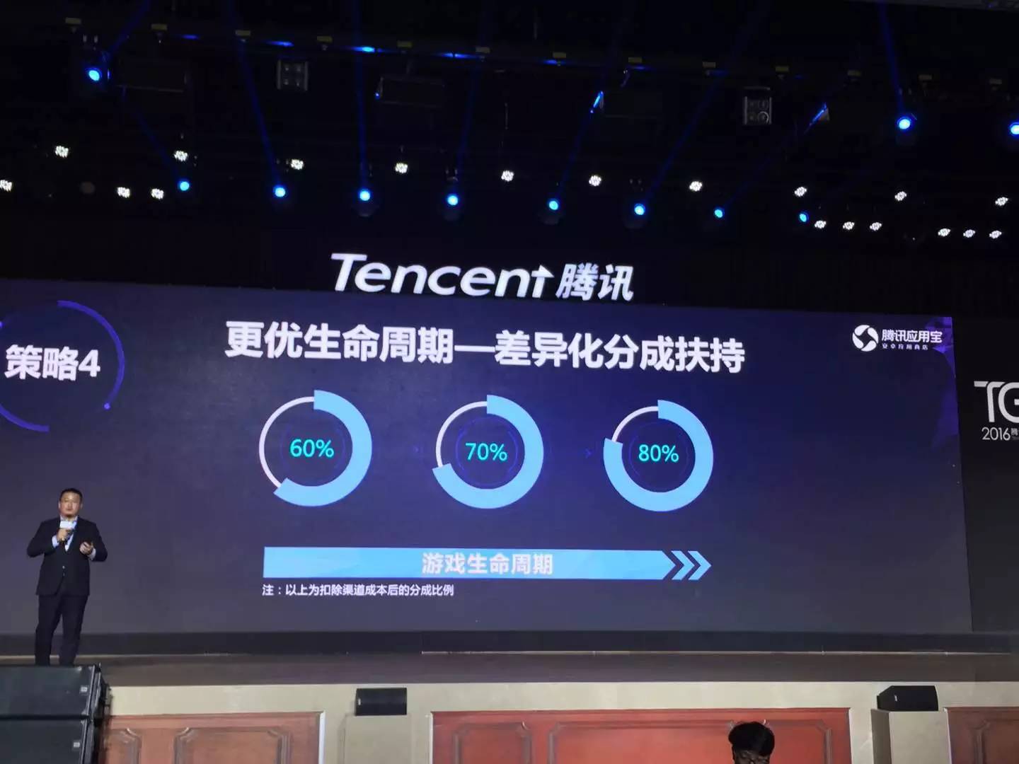 与游戏开发者息息相关的分成问题备受关注,应用宝此次发布的“星游计划”更是引起了一番讨论。腾讯开放平台总经理侯晓楠表示,应用宝此次调整分成政策之后,手游开发商将根据产品的不同生命周期及数据表现,获得阶梯分成调整。伴随游戏生命周期的不断延伸,手游研发商拿到的流水分成,将从60%跃升至70%甚至80%。