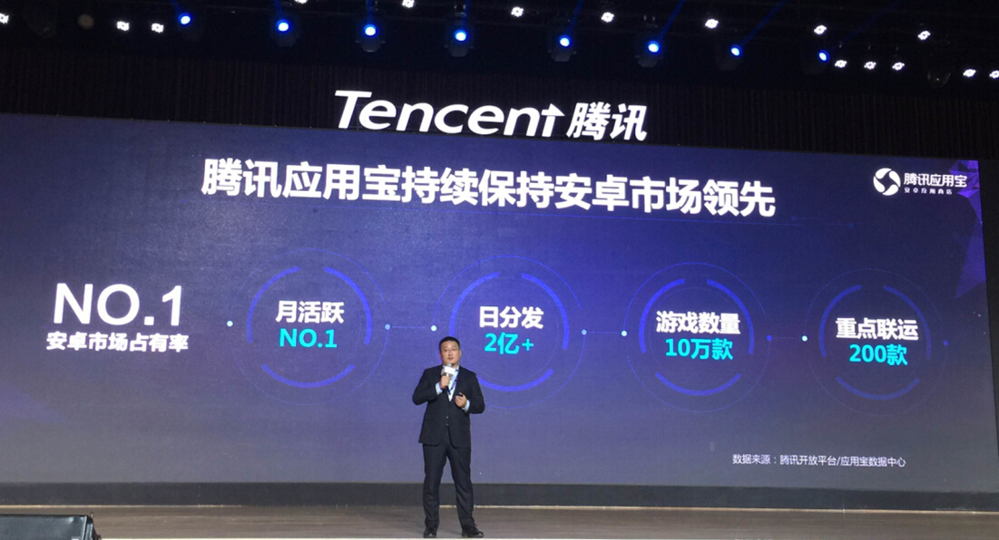 在TGPC大会上,侯晓楠分享了应用宝一系列最新成绩:截止到2016年9月,应用宝日分发量已突破2亿,APP接入数量达350万,安卓市场占有率稳居行业第一;而在手游市场,应用宝游戏接入数量达到10万款,重点联运游戏200款,两项成绩同样领跑安卓市场。